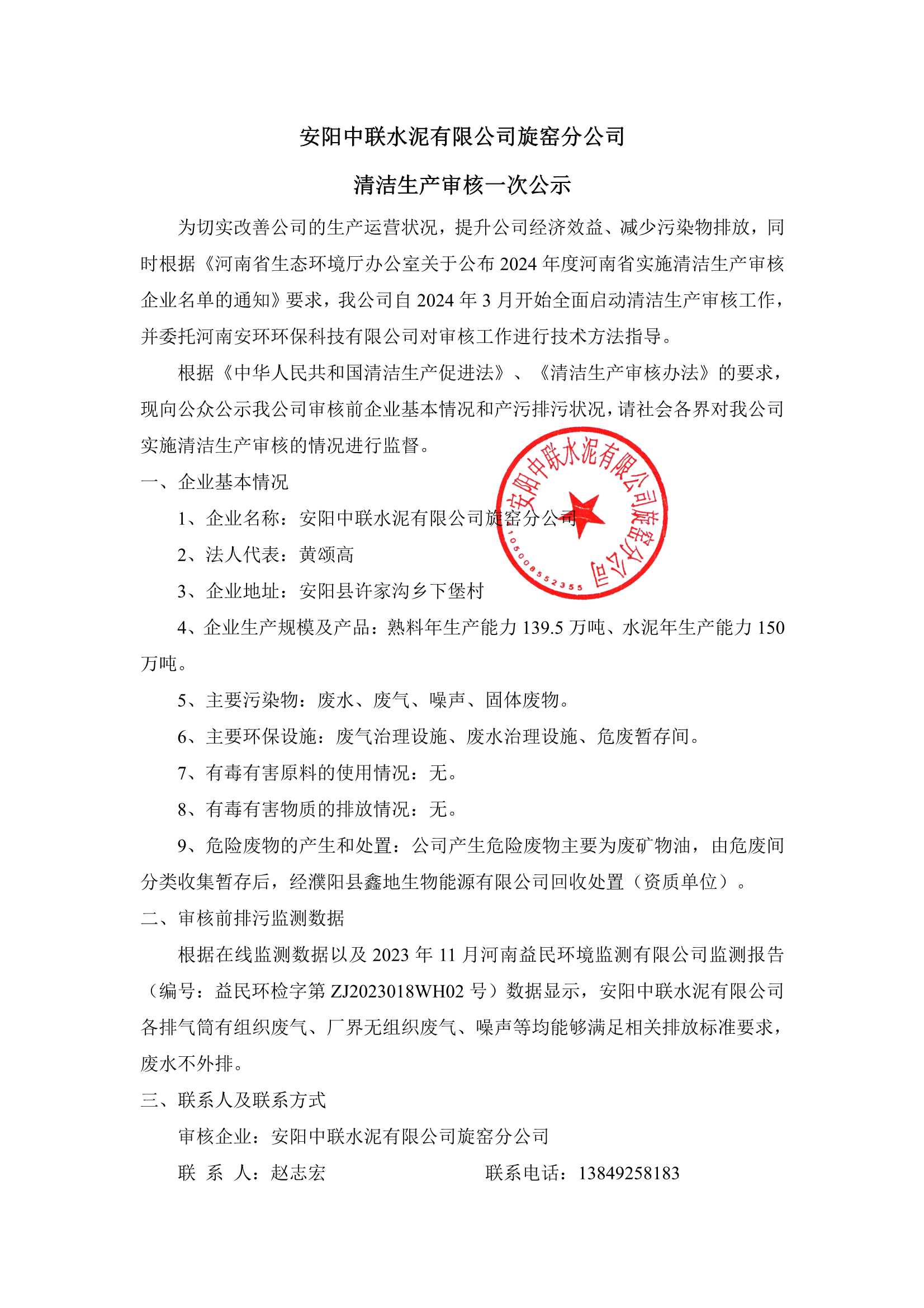 安陽(yáng)中聯(lián)水泥有限公司(含分公司)2023年度危險(xiǎn)廢物信息公示