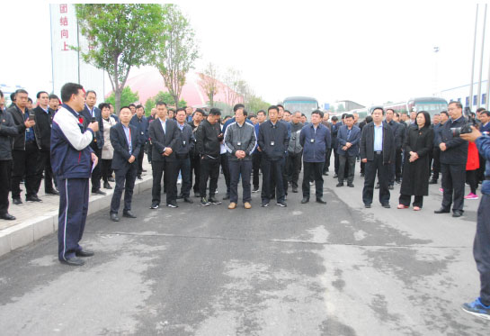 2019 年 4 月 25 日,河南省生態(tài)環(huán)境廳副廳長王喜云帶領全省各市、縣生態(tài)環(huán)境局局長、副局長共計 400 人到安陽中聯(lián)參觀調(diào)研生態(tài)環(huán)境保護工作。副總裁、安陽中聯(lián)總經(jīng)理黃頌高陪同調(diào)研。